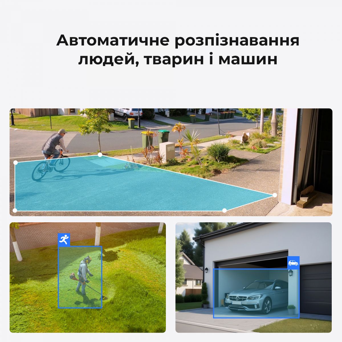 Камера автоматично надішле повідомлення на ваш смартфон, як тільки зафіксує щось підозріле у зоні видимості. Функція запису "за 4 секунди до початку руху", не дасть упустити важливі моменти. Для мінімізації хибних спрацювань Reolink Lumus E430 розпізнає людей, тварин та транспортні засоби.