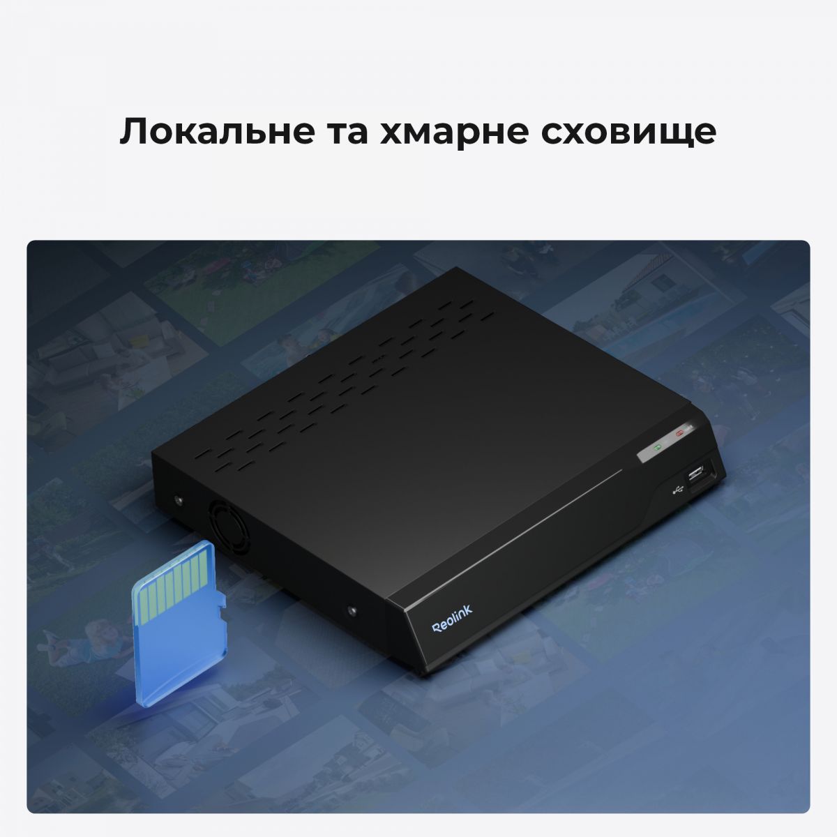 Камера пропонує користувачеві вибрати оптимальне місце для зберігання важливих записів – на внутрішній карті SD або підключеному до мережі відеореєстраторі. Налаштування місця зберігання можна змінити будь-якої миті.