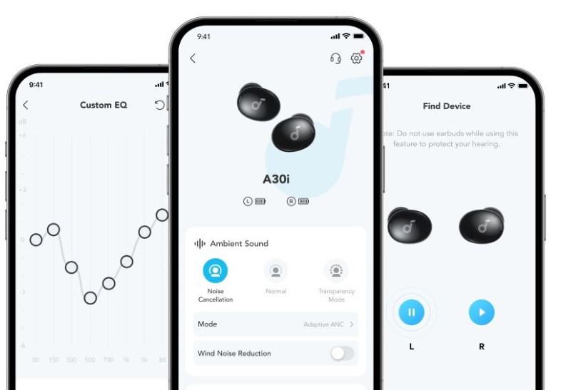 Soundcore A30i обладнані 6-міліметровими композитними мембранами, завдяки чому Ви зможете насолоджуватися добре збалансованим звучанням із насиченими середніми, потужними басами та чіткими високими частотами.